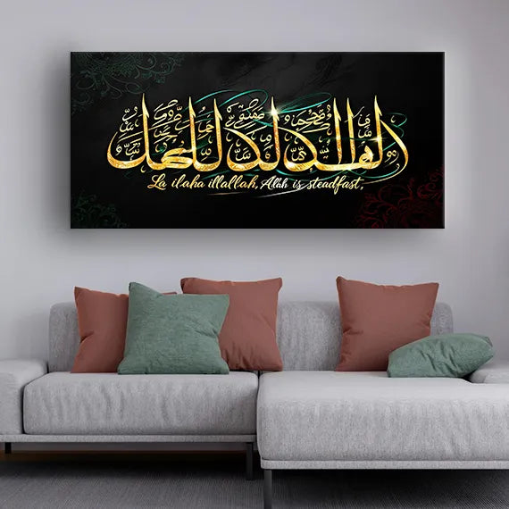 Al-Hamdu Lillah Artistic Calligraphy Wall Frame – Golden Finish Size W 4x H 2 feet