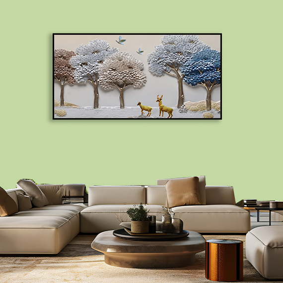 Beautiful couple of deers canvas painting for living room,bedroom, office, hotel et. big size 48x24 inch ready to hang
