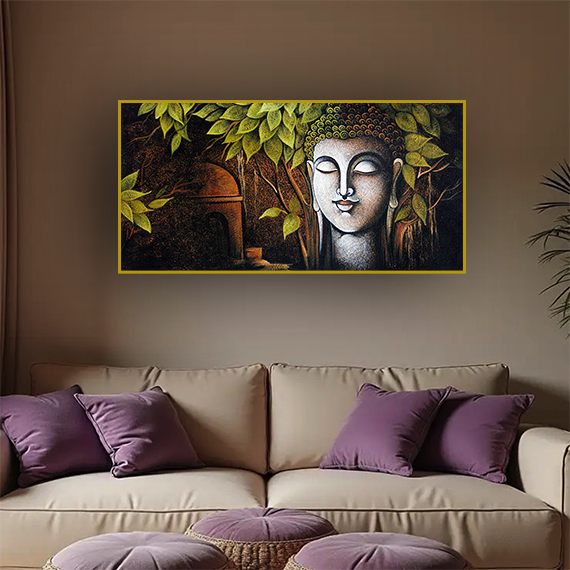 Buddha Wall Painting for Mindful Interiors canvas painting for living room,bedroom, office, hotel et. big size 48x24 inch ready to hang