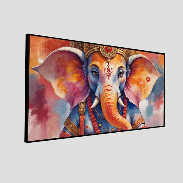 Celebrate the joy of Ganesh Chaturthi year-round with this Color Splash Ganesha Canvas Art. The vibrant mix of colors symbolizes energy, renewal, and divine blessings. Perfect for brightening up modern spaces, this painting captures the festive spirit of devotion in a contemporary style. Add color, faith, and vibrancy to your wall — a true festival of art.