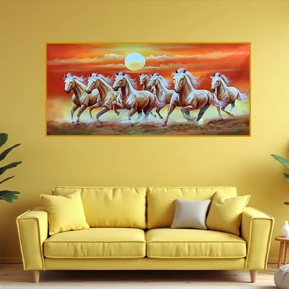 Boost motivation and optimism with this striking 7 Horses canvas wall décor. A perfect blend of tradition and modern artistry for inspired living.