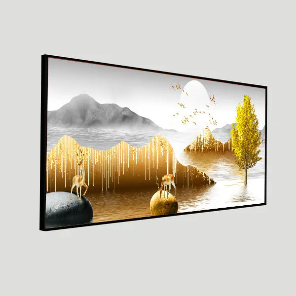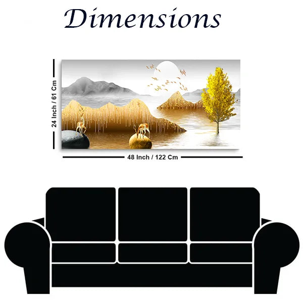 Calm, balanced, and beautiful — this Deer Reflection in Water Canvas symbolizes mindfulness and quiet elegance. With soft colors and HD finish, it turns your room into a sanctuary of peace. The 4x2 feet size adds artistic proportion, perfect for living rooms or meditation areas.