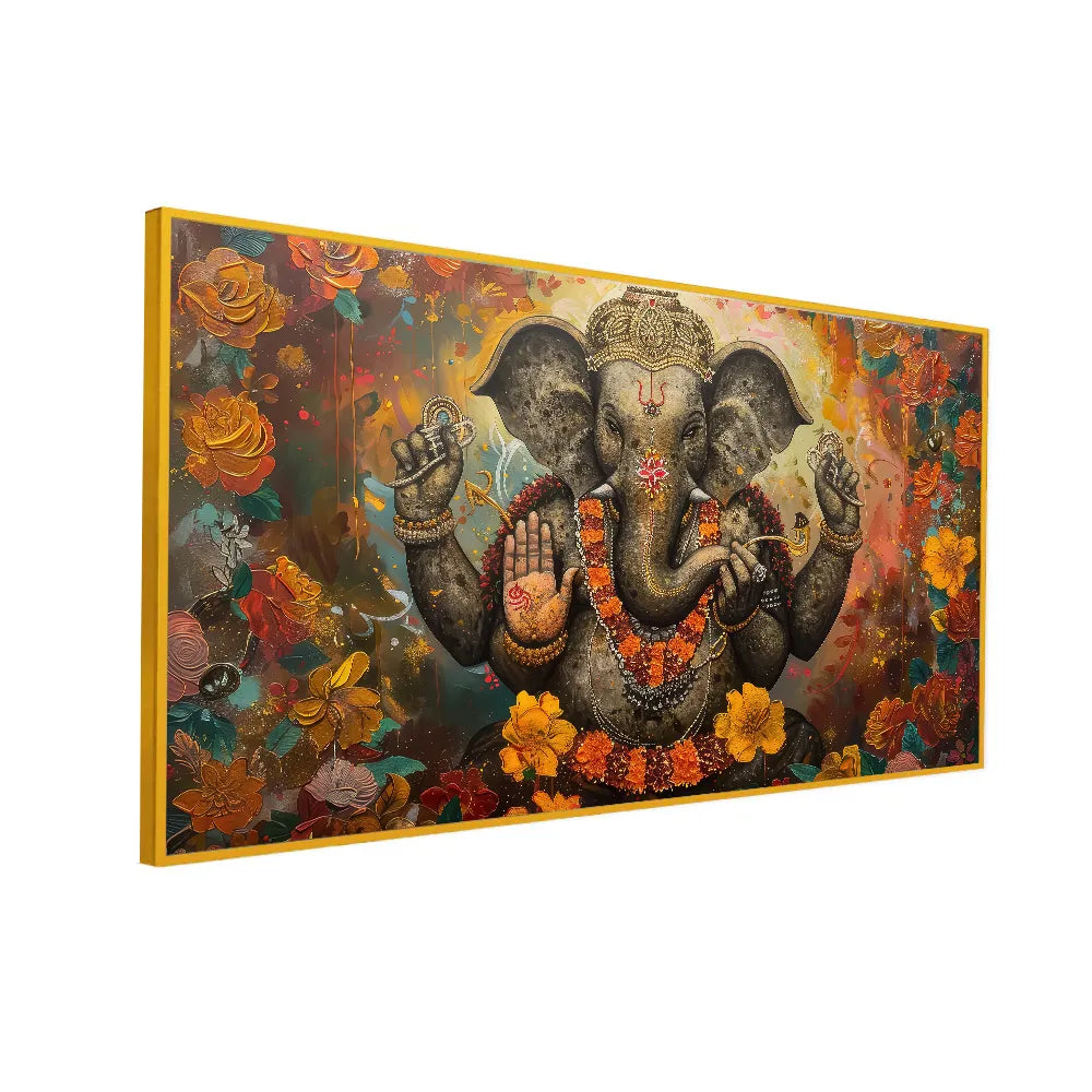 Invite divine blessings and positive energy into your home with this Lord Ganesha Canvas Wall Art. Designed in a premium floating frame, it radiates serenity and success. The vibrant colors and detailed artistry symbolize wisdom, strength, and new beginnings, making it perfect for living rooms, offices, or meditation spaces. Crafted on HD printed canvas, it adds a modern yet spiritual charm to your décor. A meaningful gift of devotion and inspiration.