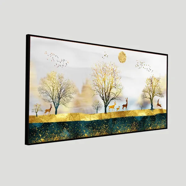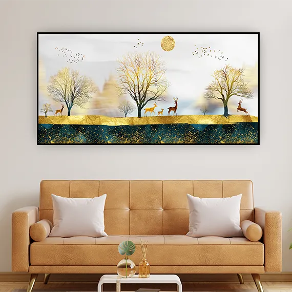 Add a story to your wall with Forest Path with Deer Canvas Art. The scenic depth and gentle sunlight create a feeling of journey and peace. This 4x2 feet nature canvas perfectly fits living spaces or hallways, adding inspiration and calmness to your home environment.