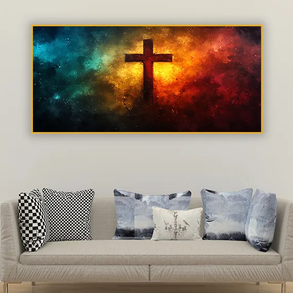 Experience the divine presence of Christ with this powerful artwork featuring Jesus and a radiant cross breaking through serene clouds. The glowing light represents hope, salvation, and God’s eternal love, bringing peace and spiritual comfort into any room. Ideal for prayer rooms, meditation spaces, churches, or gifting to loved ones who draw inspiration from Christian faith. This modern artwork beautifully blends heavenly symbolism with contemporary art style, creating a meaningful centerpiece for your home. Let this Jesus and cross painting remind you that God’s grace always shines through every storm.