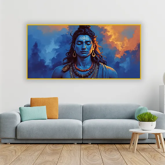Lord Shiva in Yoga Canvas Wall Art – Divine Mahadev Painting Size:H x W, 2x4 Feet