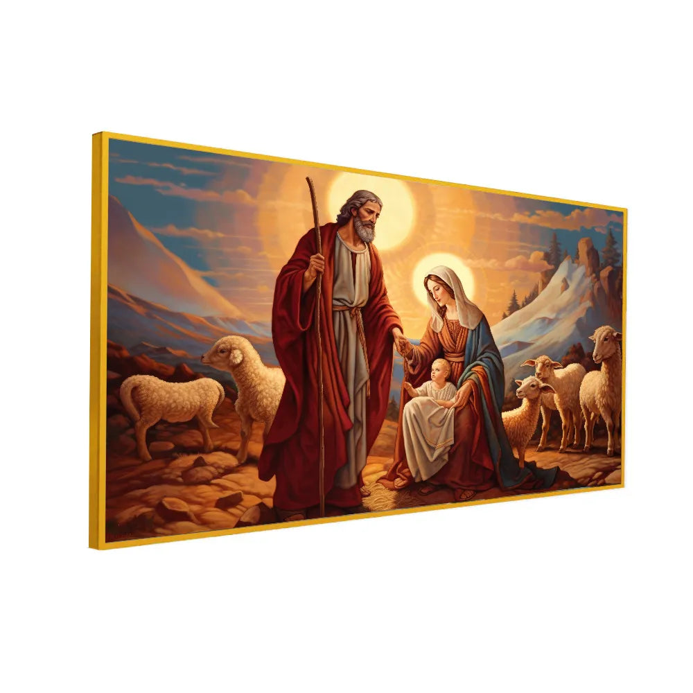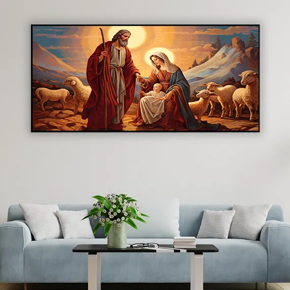 This modern artistic representation of the Holy Family blends vibrant colors with spiritual symbolism. Mary and Joseph’s gentle touch and joyful expressions create a heartwarming scene of love and devotion. Suitable for modern homes, church walls, prayer areas, or as a meaningful Christian gift. A perfect piece for those seeking both beauty and divine inspiration.