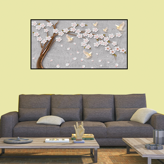 | •Framed Canvas (Floating Frame): The canvas is first wrapped and then placed inside a decorative outer frame that gives the illusion of it "floating" inside the frame. | Is the canvas painting ready to hang? | Yes, all canvas paintings come with pre-installed hanging hardware. Wrapped canvases typically have a sawtooth hanger or wire, while floating frames often include D-rings and wire for more secure mounting. |