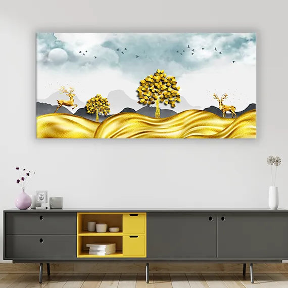Elevate your walls with the Royal Stag Mountain Landscape Canvas — a majestic portrayal of courage and confidence. The powerful stance of the stag against mountain peaks creates an inspiring visual. Perfect for offices or homes, this HD printed 4x2 feet art brings grandeur and motivation to your decor.