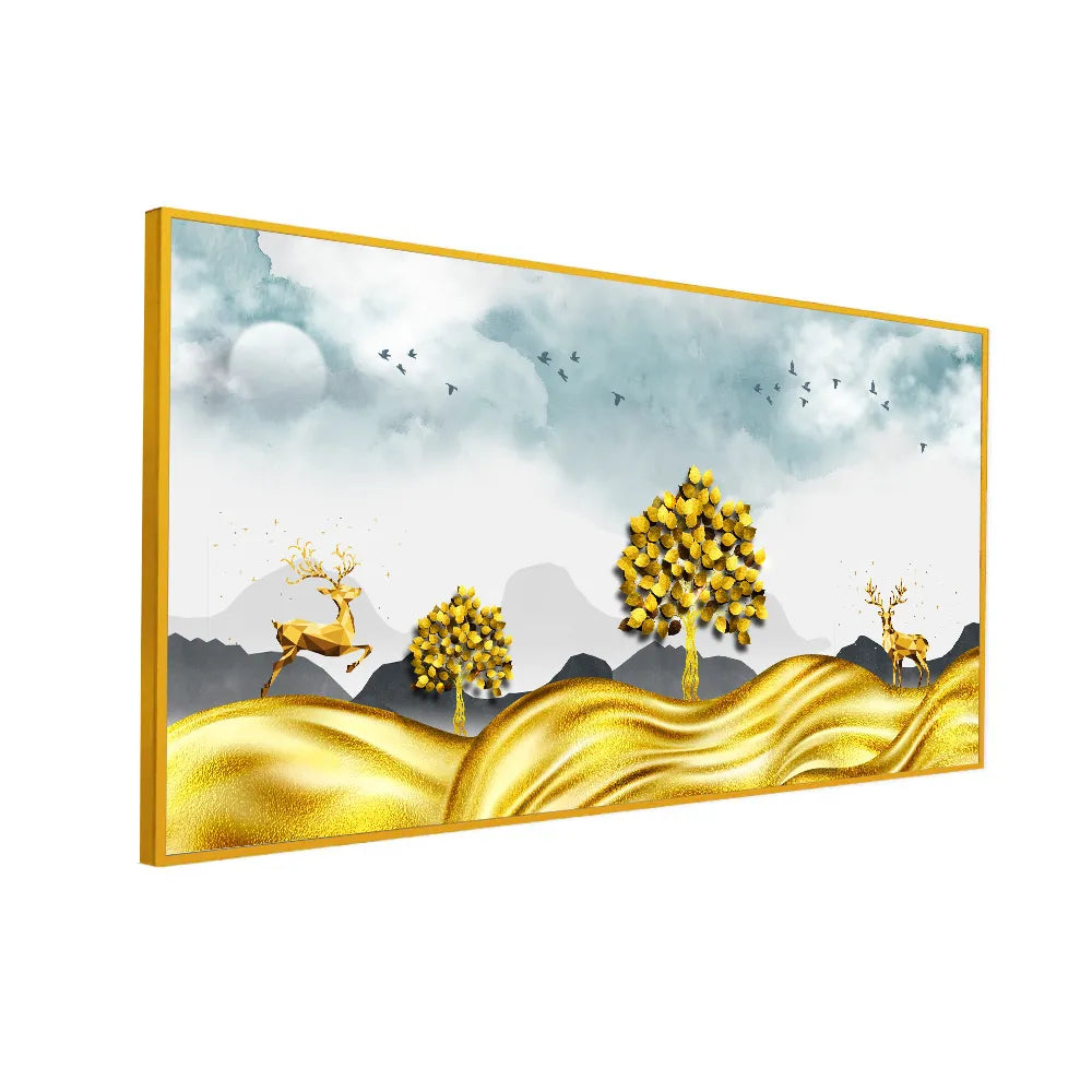 | •Framed Canvas (Floating Frame): The canvas is first wrapped and then placed inside a decorative outer frame that gives the illusion of it "floating" inside the frame. | Is the canvas painting ready to hang? | Yes, all canvas paintings come with pre-installed hanging hardware. Wrapped canvases typically have a sawtooth hanger or wire, while floating frames often include D-rings and wire for more secure mounting. |