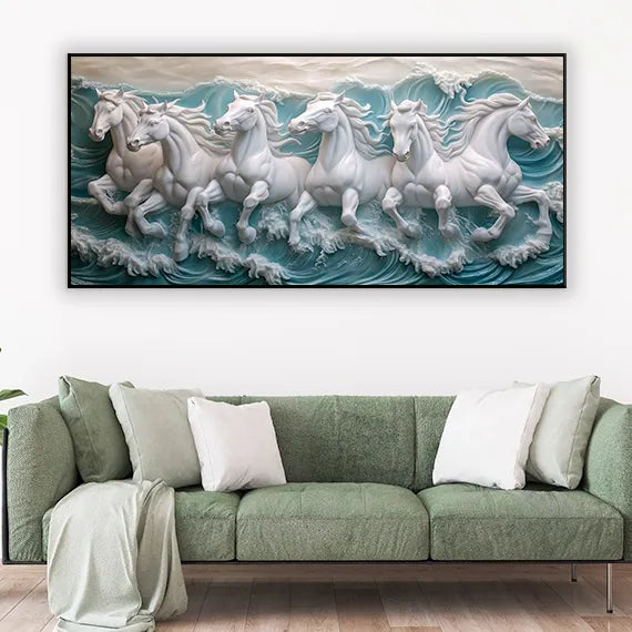 Invoke power, prosperity, and positive energy with this Seven Running Horses Canvas Wall Painting — a symbol deeply rooted in Vastu and Feng Shui. Known to bring speed, strength, and financial growth, the image of 7 horses running forward is believed to eliminate obstacles and attract success.
