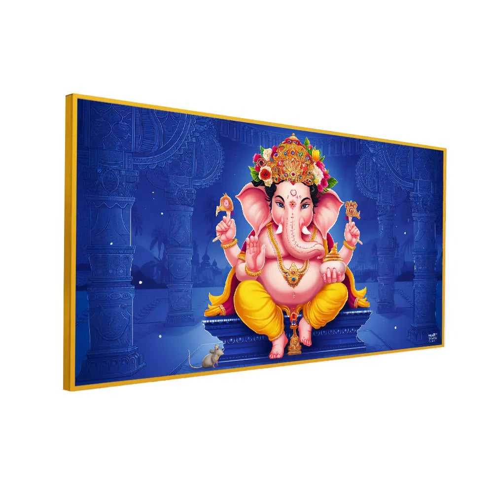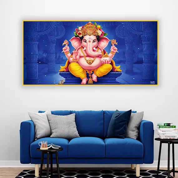 Experience the timeless beauty of devotion with this Traditional Lord Ganesha Canvas Painting. Inspired by classical Indian art, it depicts Ganesha in serene form, symbolizing strength, purity, and prosperity. The intricate detailing and warm tones make it a sacred addition to your wall décor. Perfect for temples, meditation corners, or homes that honor culture and spirituality.