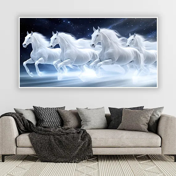 White Running Horses Vastu canvas Painting for home, office decor